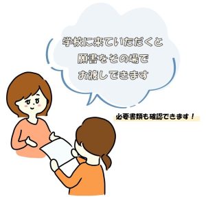 郵送での願書の取り寄せが面倒だという方は、ぜひ学校に見学も兼ねてお越しください。