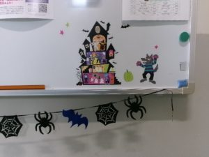 校内ではハロウィンの飾りつけを行い、にぎやかで楽しい雰囲気になっています!